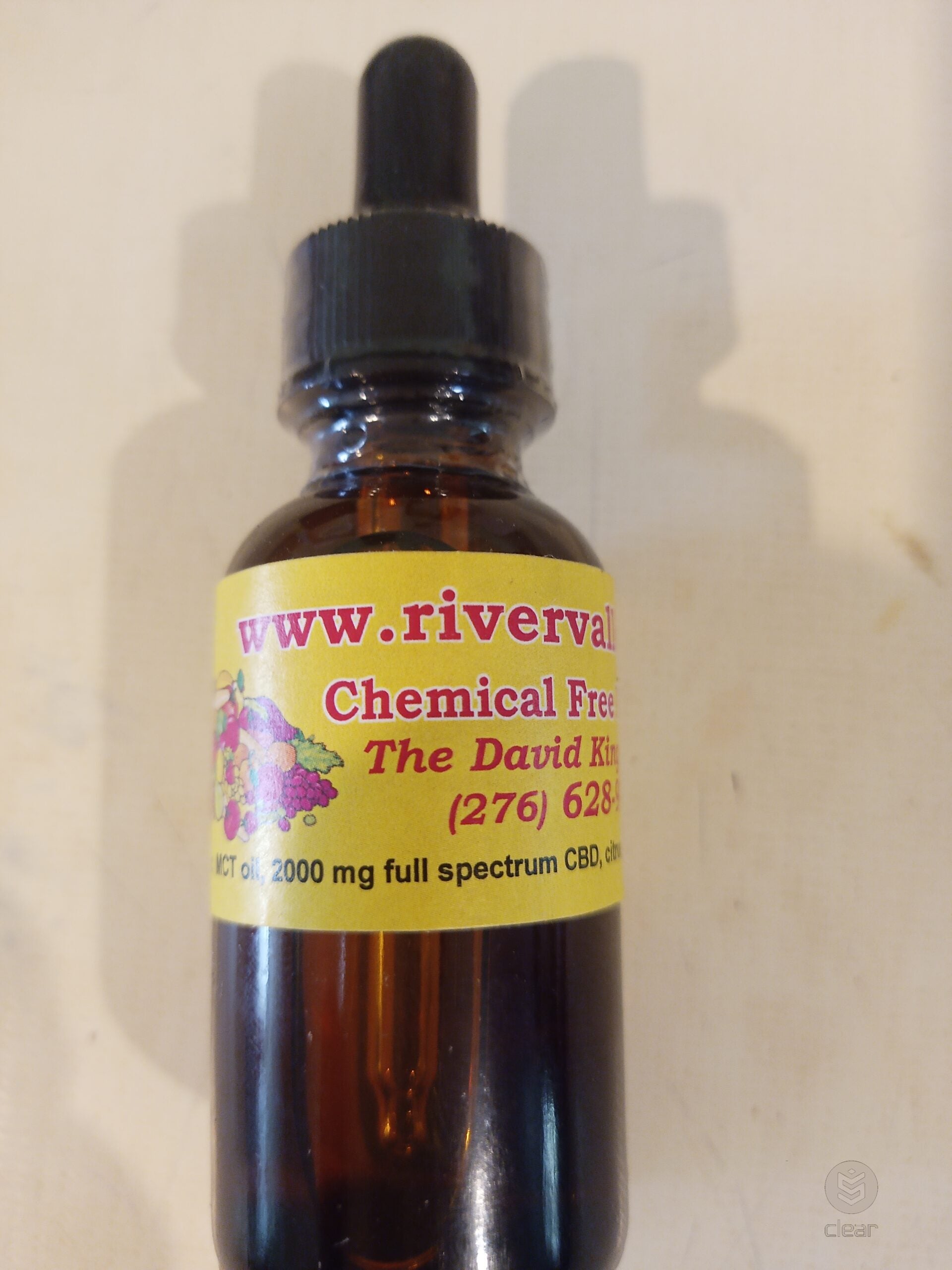 Ingredients: MCT oil, 2000 mg full spectrum CBD, citrus essential oil.