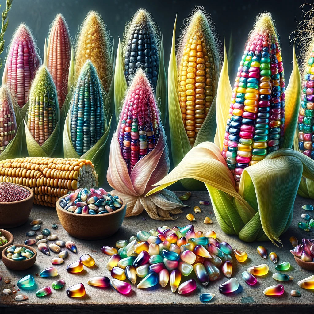 Glass Gem Corn is a breathtaking heirloom variety that produces ears of corn with kernels in a stunning array of colors, from vibrant blues and greens to soft pinks and yellows. Each ear is unique, making Glass Gem Corn a favorite among gardeners and nature enthusiasts alike. The translucent, shiny appearance of the kernels gives this corn its name, as they resemble polished glass gems.